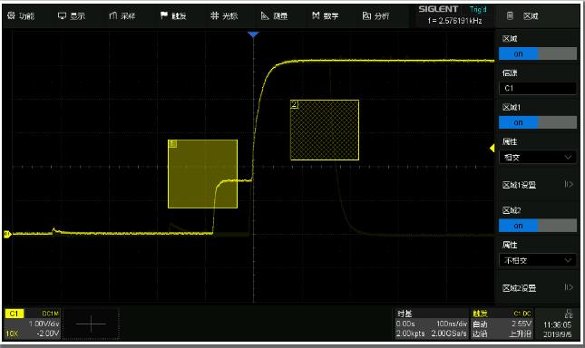 SDS3000X HD系列示波器提供豐富的觸發(fā)類型,含邊沿、間隔、超時、視頻、串行總線、區(qū)域觸發(fā)等,其中,區(qū)域觸發(fā)不同于傳統(tǒng)觸發(fā),它可應用于參數(shù)特征尚不明確的偶發(fā)信號,僅需使用鼠標或者觸摸創(chuàng)建并定義區(qū)域即可完成信號的捕捉。總線觸發(fā)支持 I2C、SPI、CAN、CAN FD、FlexRay、I2S、 MIL-STD-1553B、SENT等多種總線,提供嵌入式、汽車、計算機等串行總線的測試解決方案。