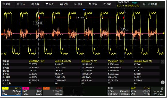SDS3000X HD可選配電源分析功能,再搭配鼎陽的電壓探頭(如DPB5000系列)、電流探頭(CP6000系列),可以快速、準確地分析電源質量、電流諧波、浪涌電流、瞬變響應、MSO管安全作業(yè)區(qū)(SOA)等12項參數(shù),如通過將開關損耗降至最低提高電源效率、通過統(tǒng)計功率器件在所有工況下瞬時參數(shù)超出安全工作區(qū)的概率評估器件工作穩(wěn)定性、通過對輸入電流進行諧波分析,觀察是否存在異常諧波影響電能質量等等,可以大幅提高電源開發(fā)人員的工作效率。
