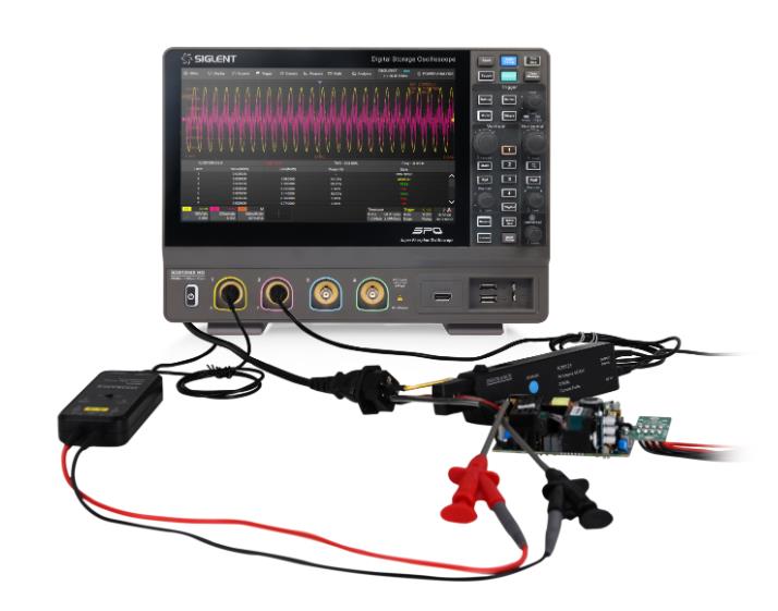 電源分析功能能夠幫助用戶快捷測量和分析電力電子領(lǐng)域中的多個(gè)項(xiàng)目,如電源質(zhì)量, 諧波, 浪涌電流, 開關(guān)損耗, 輸出紋波, 瞬變響應(yīng)等,選擇電源分析功能后,可根據(jù)連接指南正確連接電壓和電流探頭,此外,和波特圖軟件相配合還可以對電源環(huán)路響應(yīng)進(jìn)行測量分析,在一定情況下可取代昂貴的網(wǎng)絡(luò)分析儀,可廣泛應(yīng)用在開關(guān)功率器件參數(shù)測量、電源控制回路調(diào)制特征分析和線路功率諧波分析等領(lǐng)域。