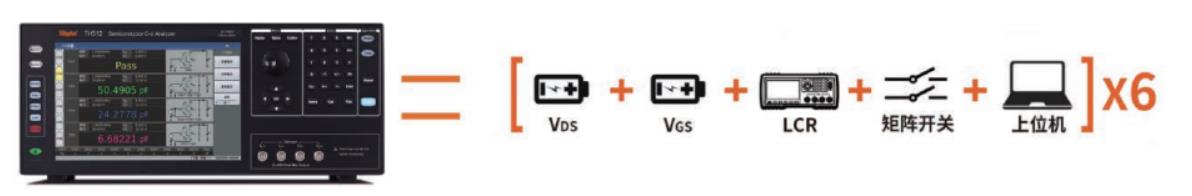 一臺儀器內(nèi)置了LCR數(shù)字電橋、VGS電壓源、VDS電壓源、高低壓切換矩陣以及上位機軟件,將復雜的接線、繁瑣的操作集成在支持電容式觸摸的Linux系統(tǒng)內(nèi),操作更簡單。特別適合產(chǎn)線快速化、自動化測試。