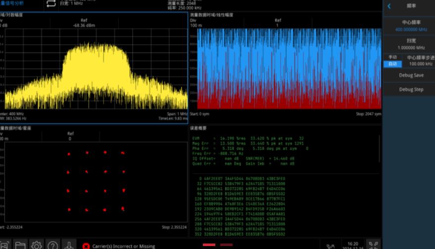 進行解調(diào)分析,可分解出信號的質(zhì)量,EVM的誤差矢量等
