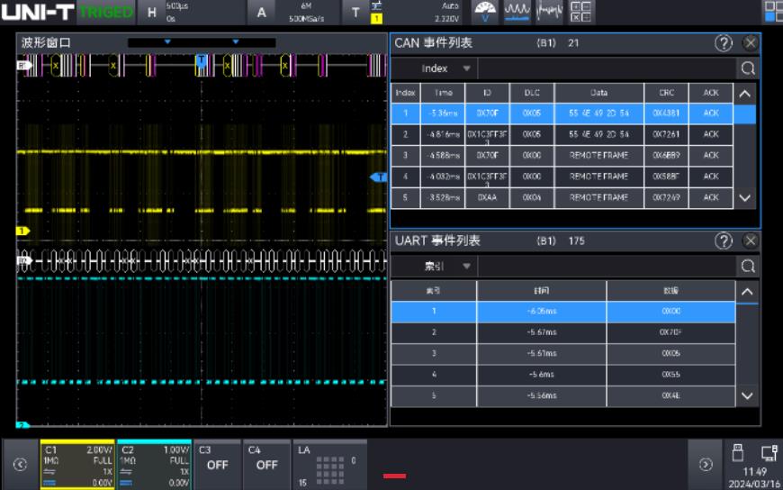 200M數(shù)據(jù)解碼小于1s,且創(chuàng)新支持四總線同步分析