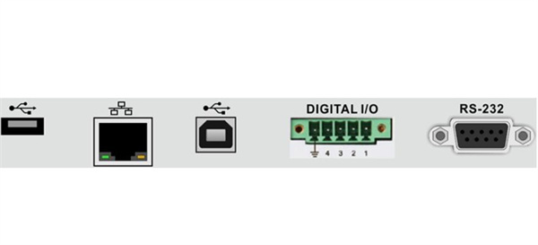 標(biāo)配RS232通信接口、以太網(wǎng)接口、Digital I/O及主、從USB接口,可通過遠(yuǎn)程連接以太網(wǎng)進(jìn)行控制,也可以通過RS232和USB,配合上位機(jī)軟件實(shí)現(xiàn)軟件控制。