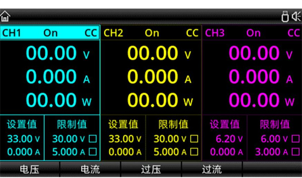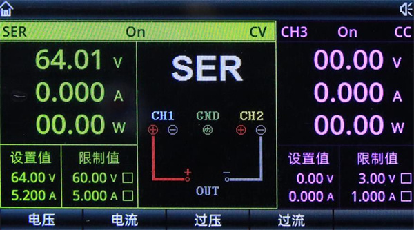 采用4.3英寸高清顯示屏,為用戶提供了功能豐富,操作簡單的人機(jī)交互界面,可以實(shí)時(shí)顯示電源當(dāng)前的設(shè)定輸出電壓/電流、實(shí)際輸出電壓/電流和保護(hù)輸出電壓/電流值,同時(shí)各功能交互界面簡單全面,易于操作。