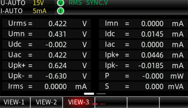 三種顯示風格; VIEW-1:Meter常規(guī)測量界面 VIEW-2:同時顯示14個參數 VIEW-3:數學運算界面