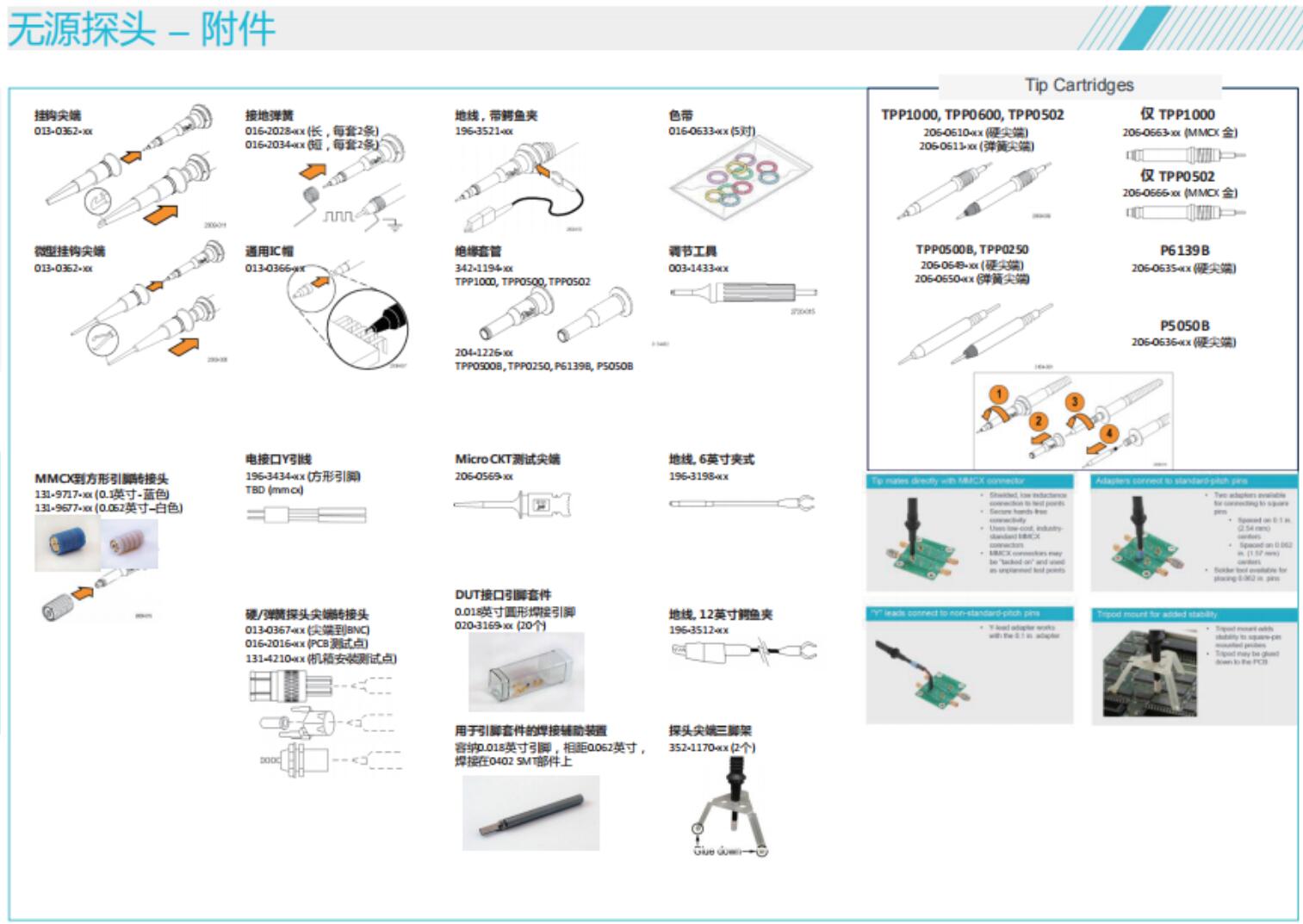 無源探頭TPP0500B,TPP0250硬尖端206-0649-xx;彈簧尖端206-0650-xx
