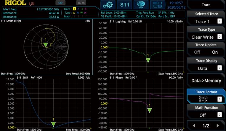 VNA模式可以實(shí)現(xiàn)對(duì)元器件、電路網(wǎng)絡(luò)的S11、S21以及故障點(diǎn)定位的測(cè)量,通過史密斯圓圖、極坐標(biāo)等多種顯示更精確地表征被測(cè)件的網(wǎng)絡(luò)特性。