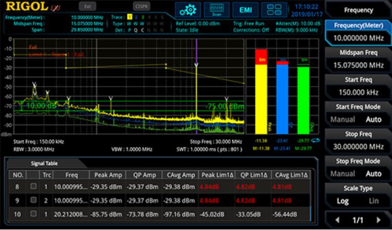 RSA3000內(nèi)置EMI預(yù)測試應(yīng)用軟件,結(jié)合符合CISPR標(biāo)準(zhǔn)的濾波器,對產(chǎn)品進(jìn)行傳導(dǎo)及輻射的預(yù)測試,從而發(fā)現(xiàn)其傳導(dǎo)/輻射騷擾源并改善,加速產(chǎn)品上市。