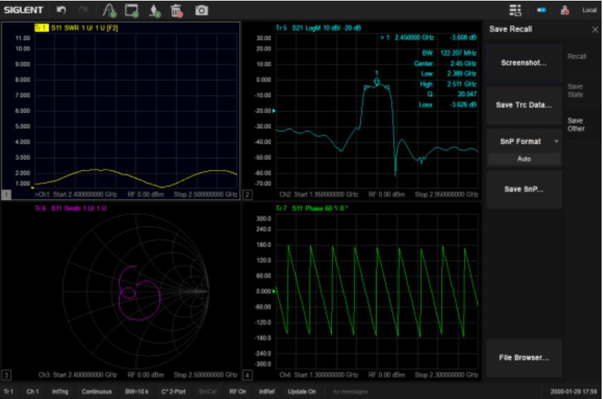 除開外觀設(shè)計(jì),其先進(jìn)的用戶界面,配合上12.1英寸超大觸摸屏與外接的鼠標(biāo)和鍵盤,讓工程師能更快的添加或刪除窗口,通道和跡線。SNA5000A支持在多個(gè)窗口下,添加多條跡線進(jìn)行S參數(shù)測(cè)量。并且測(cè)量結(jié)果,可以多種數(shù)據(jù)格式顯示,如 Log Mag,Lin Mag,Phase,Delay,Smith,SWR,Polar等,可以方便快捷地分析被測(cè)物的傳輸系數(shù),反射系數(shù),駐波比,阻抗匹配,相位,延時(shí)等參數(shù)。