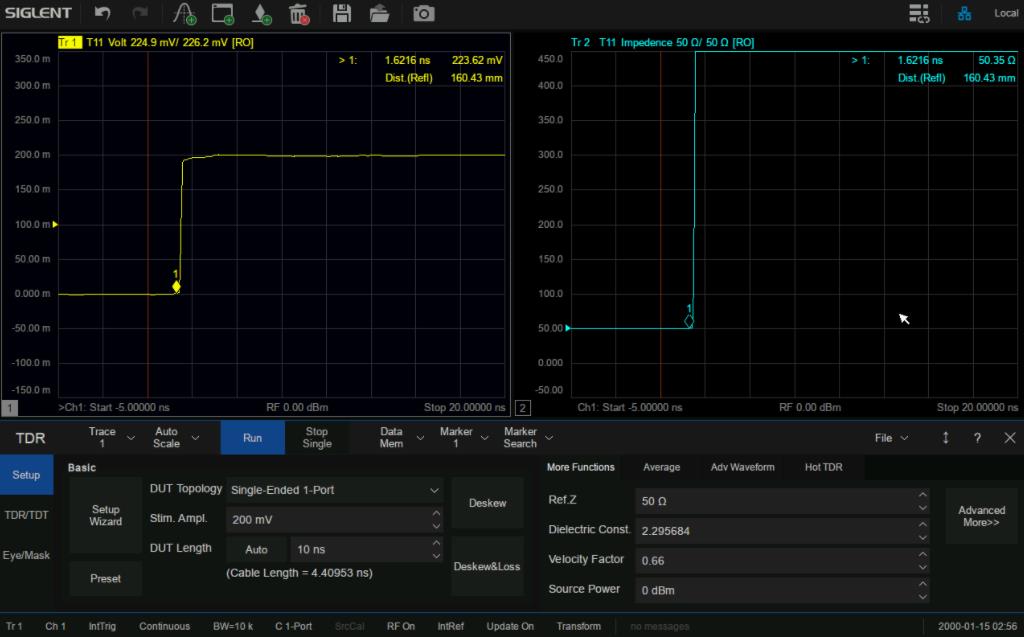 SNA5000X系列支持TDR時域反射計測量功能,可在時域?qū)鬏斁€的特征阻抗,時延等參數(shù)進行分析。