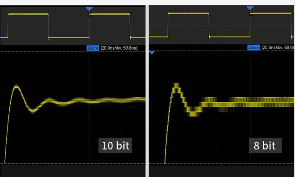 垂直分辨率用來(lái)描述數(shù)字示波器中ADC的位數(shù),即位數(shù)越高,垂直分辨率越高,顯示波形就越接近真實(shí)波形。