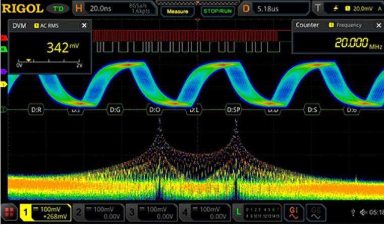 MSO5000系列提供了350MHz帶寬下最高8GSa/s的實(shí)時(shí)采樣率,約23倍的采樣帶寬比使其在同級(jí)別示波器產(chǎn)品中占據(jù)領(lǐng)先地位,同時(shí)具備200Mpts的超長(zhǎng)波形存儲(chǔ)深度。