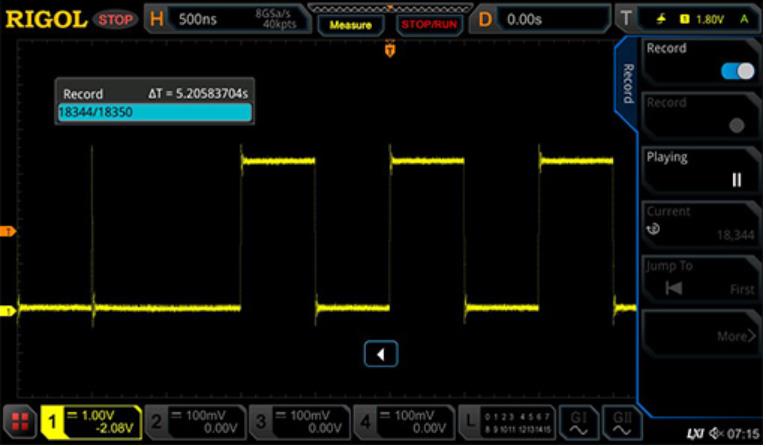 硬件波形錄制功能采用了分段存儲(chǔ)技術(shù),可以通過設(shè)定觸發(fā)條件實(shí)現(xiàn)有選擇性地捕獲和存儲(chǔ)用戶關(guān)注的信號(hào),并在信號(hào)上標(biāo)記時(shí)間,這樣既保證了捕獲的高效性,又進(jìn)一步擴(kuò)展了波形觀測(cè)的總時(shí)間。