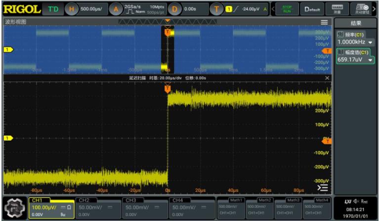 業(yè)內(nèi)領(lǐng)先的100μV/div垂直靈敏度檔位,uV級別的信號也能準(zhǔn)確測量。