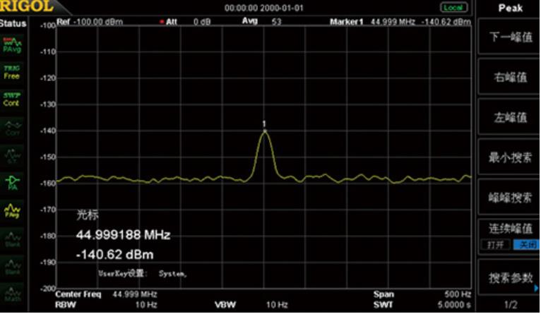 微弱信號的測試容易受到頻譜儀本身的本底噪聲影響。DSA800系列顯示平均噪聲電平低至-161dBm,可以有效保證對微弱信號的測試能力。