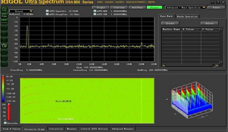 選配的Ultra Spectrum DSA系列頻譜儀軟件不但可以完成頻譜儀的控制,數(shù)據(jù)傳輸功能,還可以提供強(qiáng)大的光譜圖、瀑布圖等顯示和分析功能。
