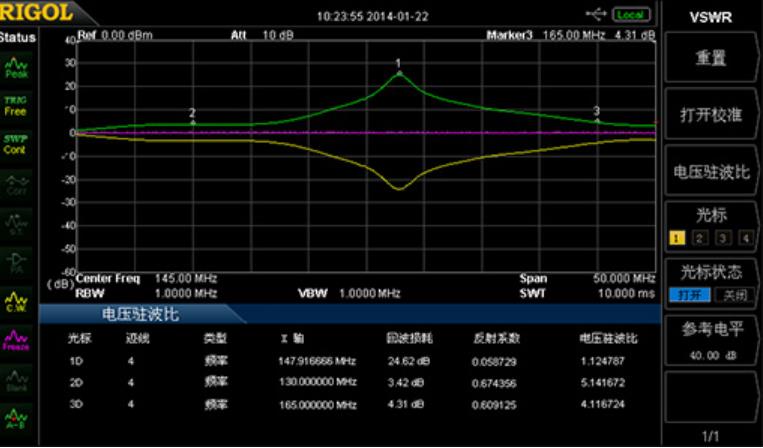 DSA800系列具備VSWR測量能力,選擇帶有跟蹤源型號(-TG),配合VSWR電橋?qū)崿F(xiàn)電壓駐波比測試。