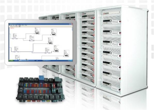 汽車中央控制盒測試系統(tǒng),由可編程電子負(fù)載、可編程電源等測試設(shè)備配合測試軟件搭建而成,可檢測中央控制盒長時(shí)間工作的穩(wěn)定性,完成繼電器壽命測試、保險(xiǎn)絲測試及溫度監(jiān)控和故障報(bào)警提示等重要性能指標(biāo)的檢測。提供圖形化的編輯界面,操作簡單,繼電器通斷時(shí)序、負(fù)載電流和運(yùn)行時(shí)序、每一路的通道名稱均可編輯,且當(dāng)其中一路出現(xiàn)故障時(shí),軟件會自動發(fā)出報(bào)警,該路停止運(yùn)行,不影響其他路的正常運(yùn)行。軟件運(yùn)行界面可顯示電壓、電流、溫度、運(yùn)行時(shí)間、運(yùn)行狀態(tài)、I/O狀態(tài)等。