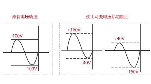 ATA-2000系列功放配備了可變電壓軌的功能,該功能可設(shè)定功放內(nèi)部的電壓軌道,使功放輸出電壓的正極性和負(fù)極性超出原有的電壓軌道限制。