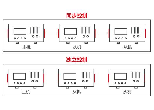 ATA-7000全系列具有主從機(jī)功能,當(dāng)實(shí)驗(yàn)中需要更多通道同步輸出時(shí),可選擇該功能。該功能可以將多臺(tái)功放進(jìn)行級(jí)聯(lián),只需要設(shè)置主機(jī)的參數(shù),級(jí)聯(lián)的從機(jī)可同步做變化。