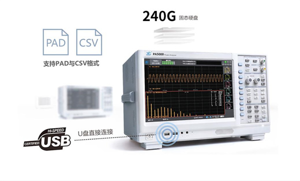 PA5000H功率分析儀擁有高達(dá)240G的固態(tài)硬盤可以海量存儲(chǔ)數(shù)據(jù),用戶更可以直接連接U盤將想要的數(shù)據(jù)全部?jī)?chǔ)存,PAD與CSV格式多樣支持、存儲(chǔ)時(shí)間隨意控制,讓存儲(chǔ)再也不是難題。