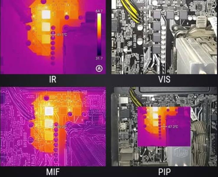 全紅外、可見(jiàn)光、MIF、畫中畫四種圖像模式,均可直觀查看目標(biāo)溫度數(shù)據(jù),并可自動(dòng)呈現(xiàn)全屏最高溫、最低溫、中心點(diǎn)溫度