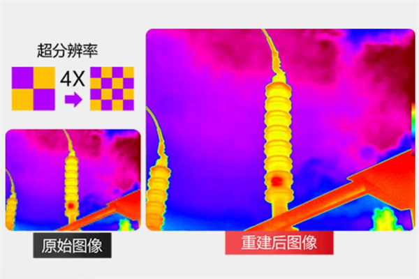 將低分辨率圖像通過特定算法增加圖像細(xì)節(jié)信息,超分辨率重建可將紅外圖像像素提升至原來的4倍,獲得高品質(zhì)的成像效果